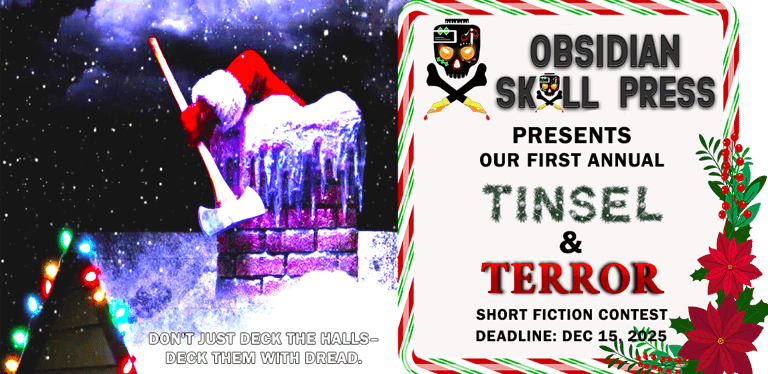 #ObsidianSkullPress #TinselAndTerrorContest #LiteraryTreason #OpenForSubmissions #SeasonalDread #NavidadNightmares #HorrorForTheHolidays #BadSantaEnergy