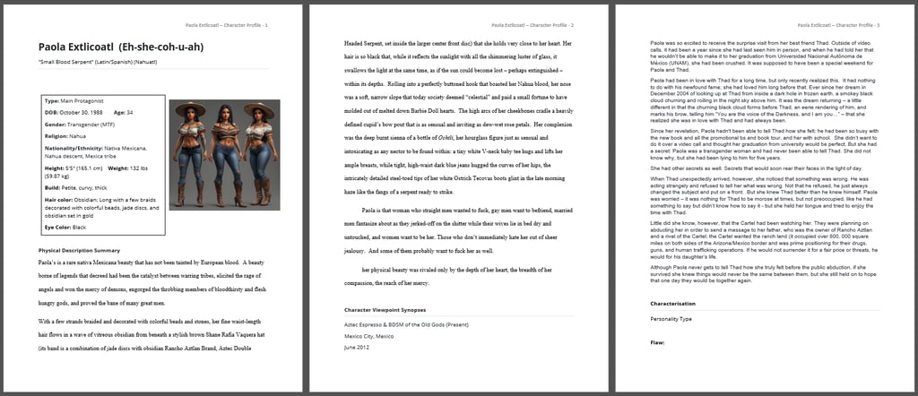I design full sensory profiles covering backstory to present viewpoint, mental/emotional traits, their social circles, and every little detail that will breathe life into them.
