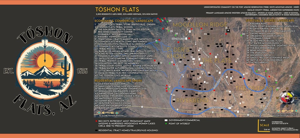 Tóshon Flats isn’t just a dot on a map. It’s a living, bleeding entity. Think Dark Winds meets No Country for Old Men meets Welcome to Derry, but with more generational trauma and better frybread.